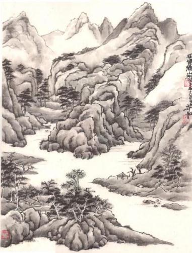 画材:墨・顔彩、生宣紙・鳥の子紙に裏打ち