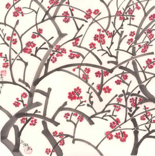 画材:墨・顔彩、生宣紙・鳥の子紙に裏打ち